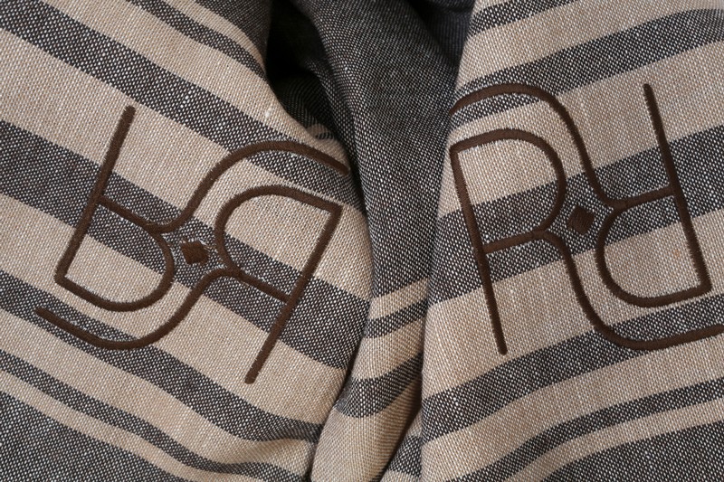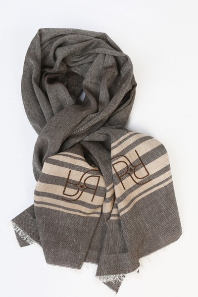 Sciarpa in Lino e Lana di peso medio/leggero, calda e morbida con logo ricamato.